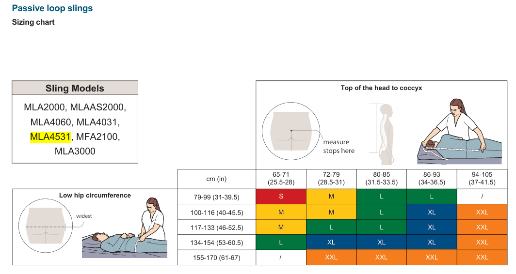 Careful resident/patient assessment is strongly recommended as the nature of this sling means there is less fabric to give support compared to a general-purpose sling and it may not be suitable for patients with poor upper or lower body tone.